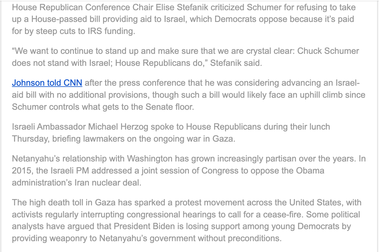 • Sweden and Canada said they will resume aid payments to UNRWA, the UN agency for Palestinian refugees, the BBC reports. The Australian government later announced it would also resume funding.